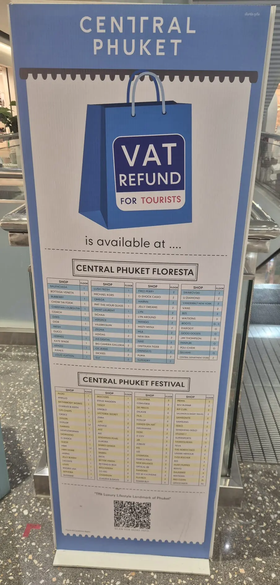 Pour la liste complète des magasins éligibles à la VAT Refund à Central Phuket vous pouvez vous rendre sur www.centralphuket.com.