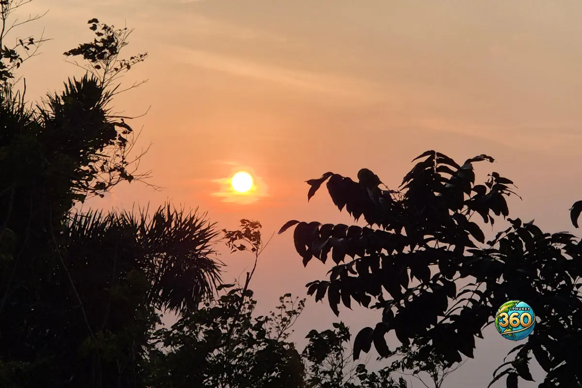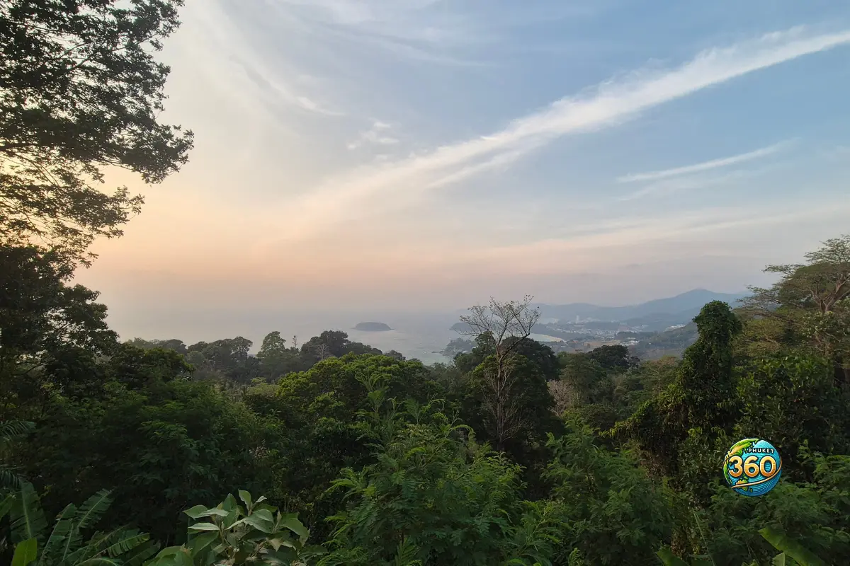 Par temps clair, on aperçoit les petites îles au large, notamment Koh Kaew Yai. En saison verte, les nuages peuvent rendre le ciel encore plus spectaculaire.