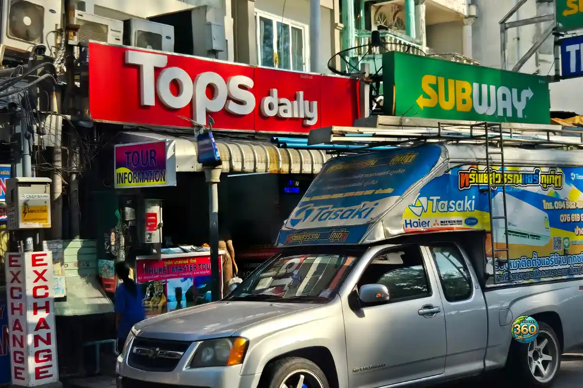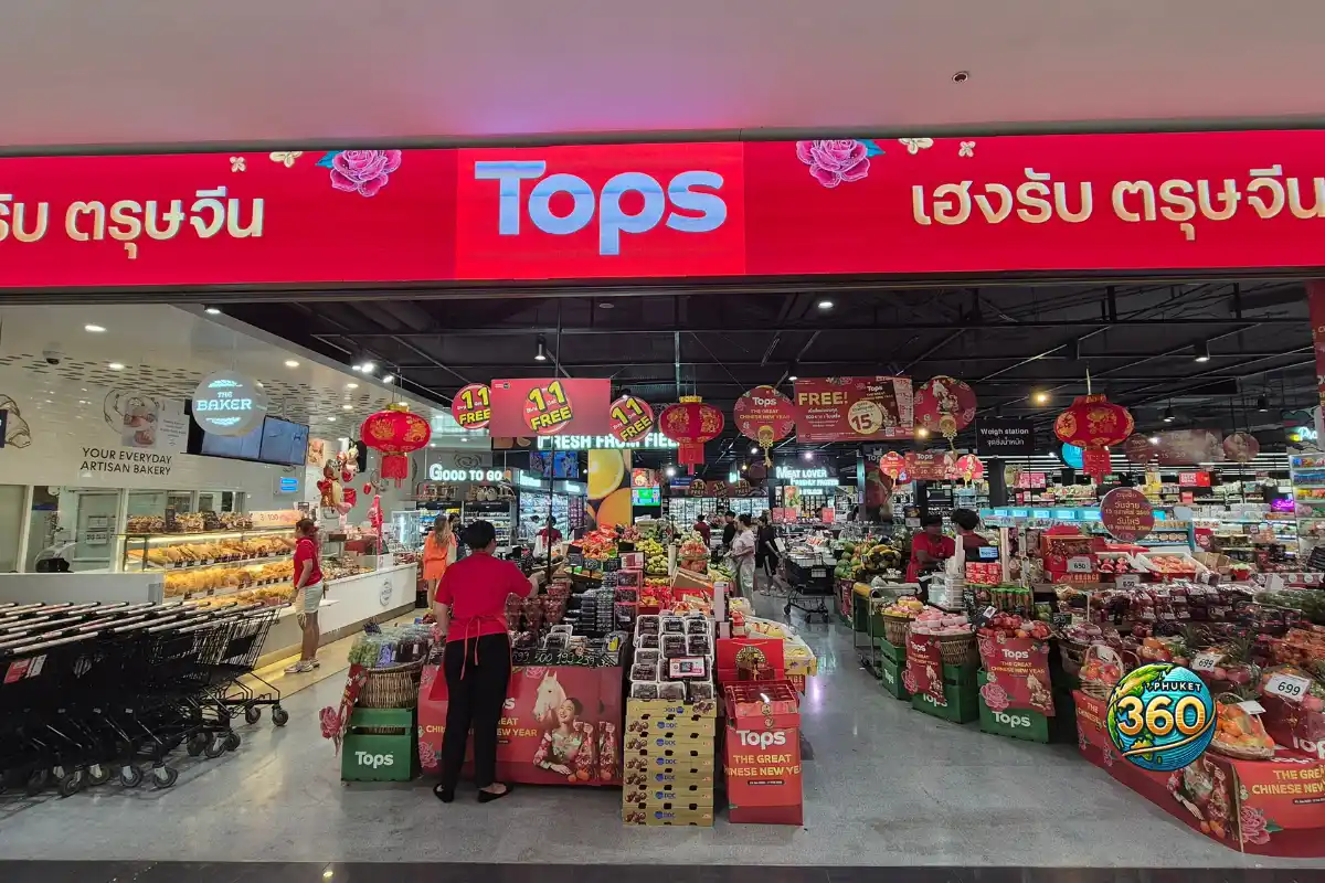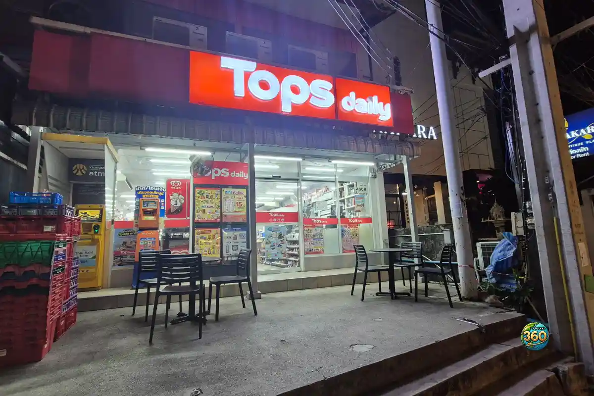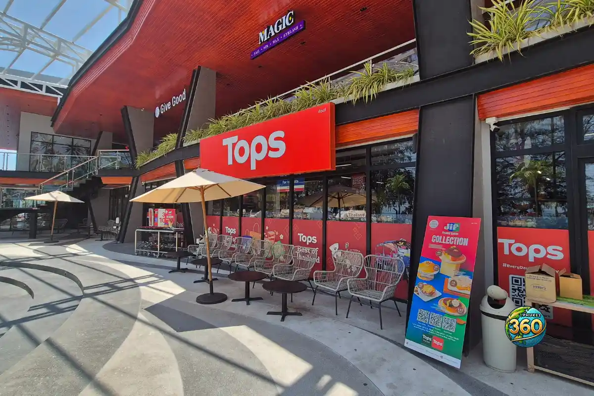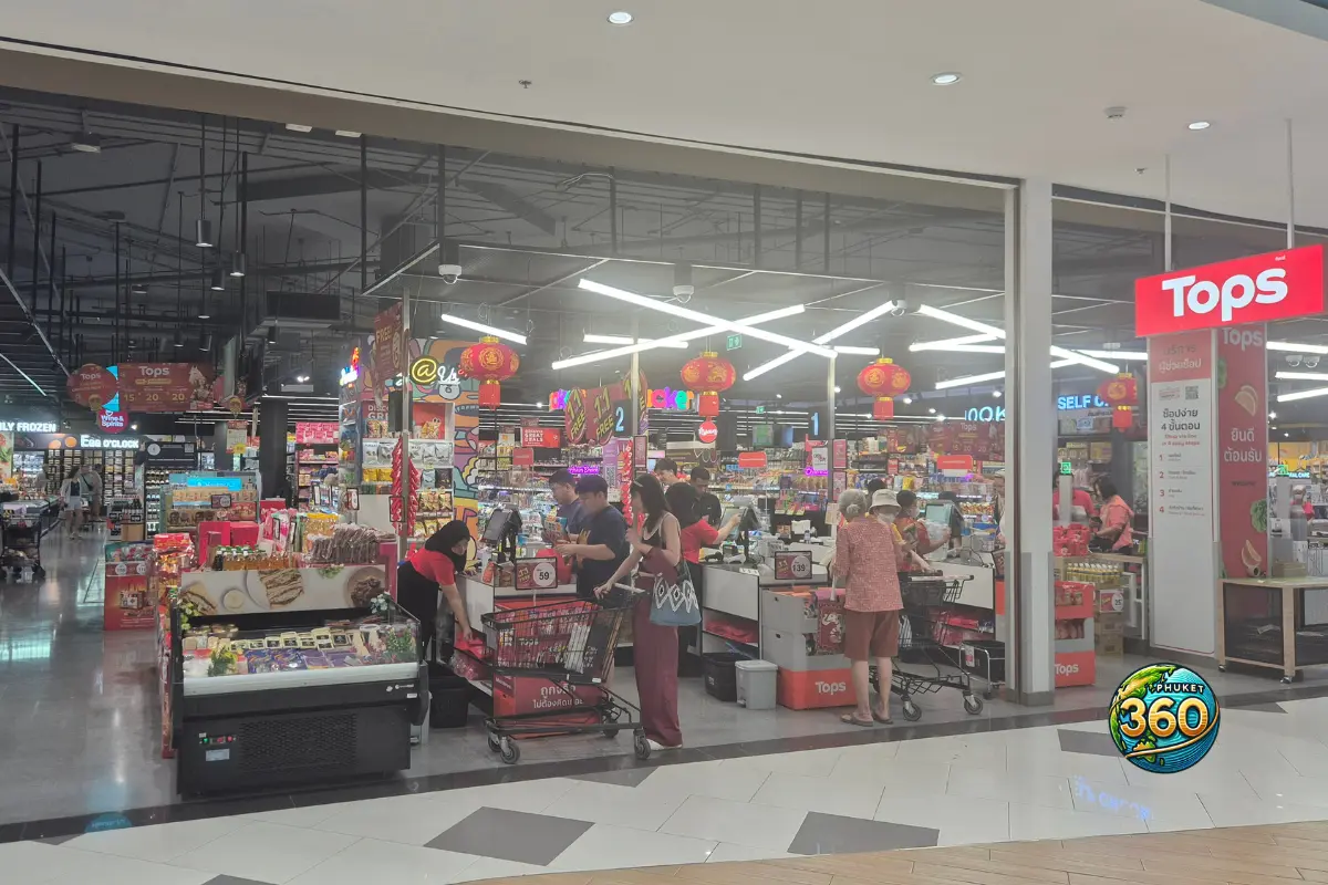 Exemple à Rawai : il existe un Tops à Mixxmall Rawayana (Rawai) présenté comme un “supermarché style européen”.