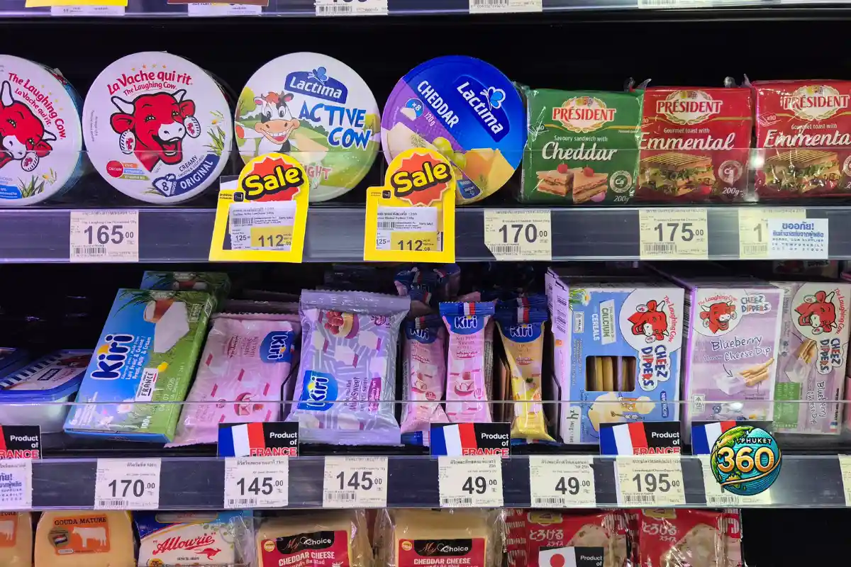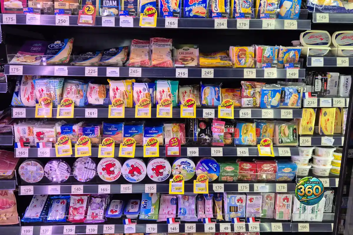 Par exemple : le Big C Extra Jungceylon de Patong possède un comptoir à fromage et un “large range” de produits importés.