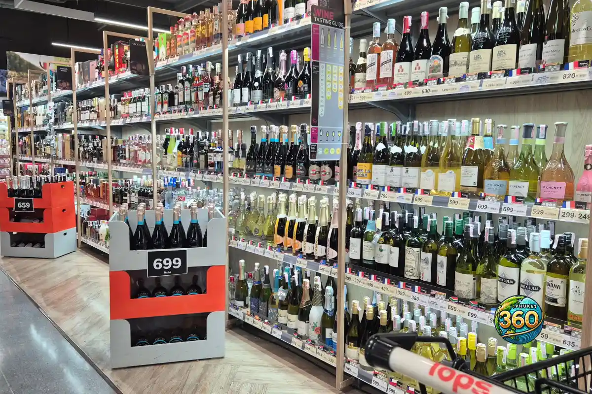 Les enseignes comme Big C, Lotus’s ou Tops Market proposent un choix plus large, avec des rayons dédiés à l’alcool.